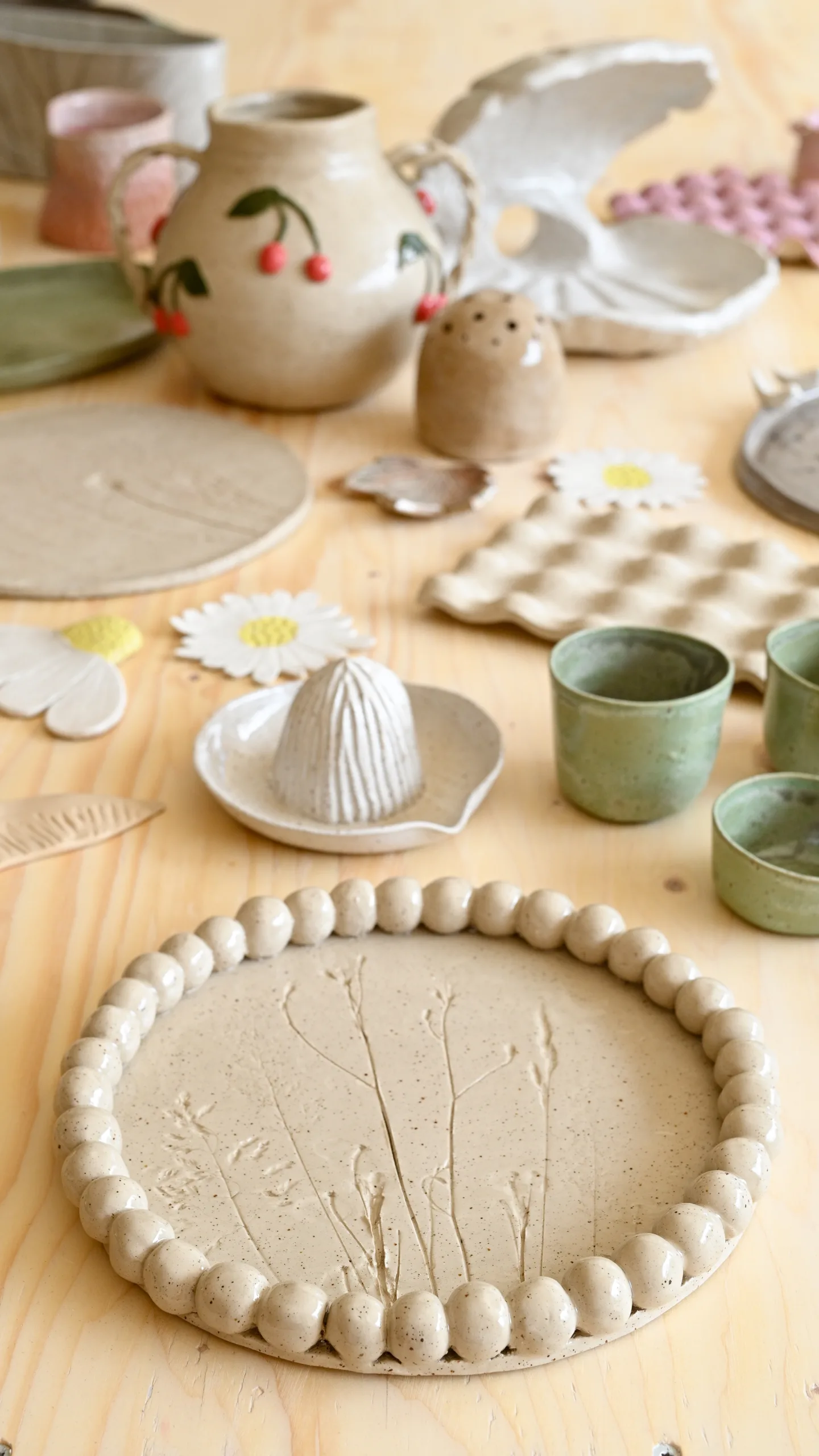 Valmiin työn voi maalata tarjolla olevin savimaalein. Tämän jälkeen työ kuivuu viikon (tai kaksi, riippuen työn koosta). Pajahintaan sisältyy kirkas tai valkoinen lasite, jonka laitan työsi pintaan raakapolton jälkeen. Mikäli haluat lasittaa työsi jollain muulla lasitteella, tulee tähän varata toinen avoin paja tai sopia lasituksesta erikseen.